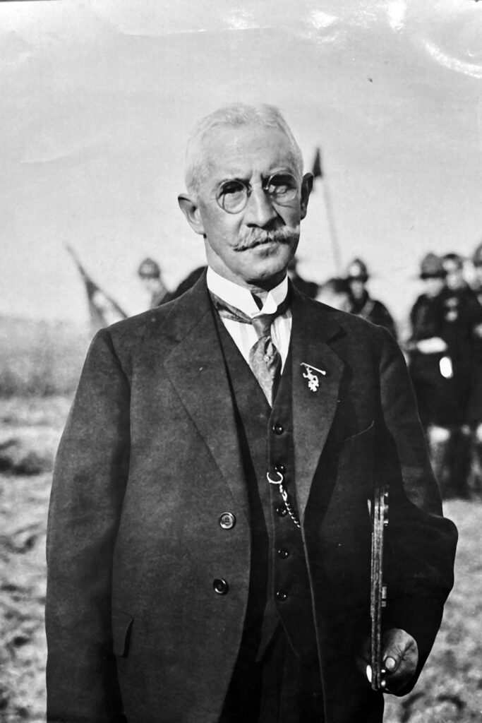 Men ziet hierboven den heer Van Es temidden van de geestdriftige troep.