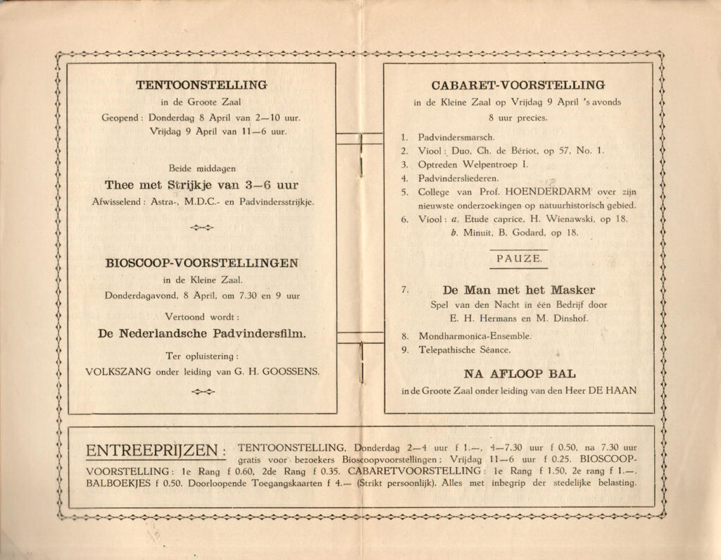 Op het programma van 08-04-1920 en 09-04-1920 staan een tentoonstelling, een bioscoopvoorstelling en een cabaretvoorstelling in de verschillende zalen van Tivoli.